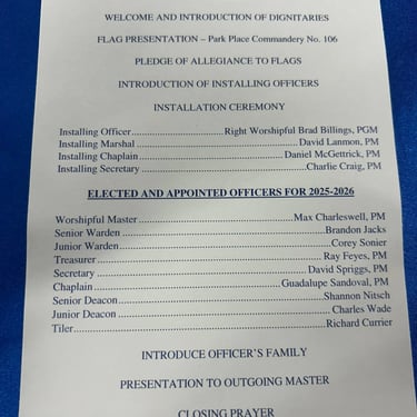 Installing Officer ........................................ Right Worshipful Brad Billings, PGM